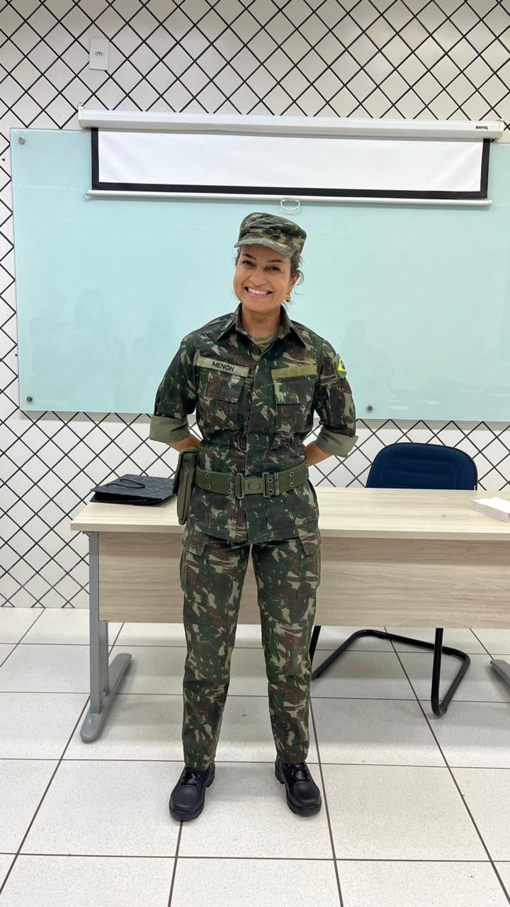 A professora Tatiana Menon surpreendeu os calourou com sua farda